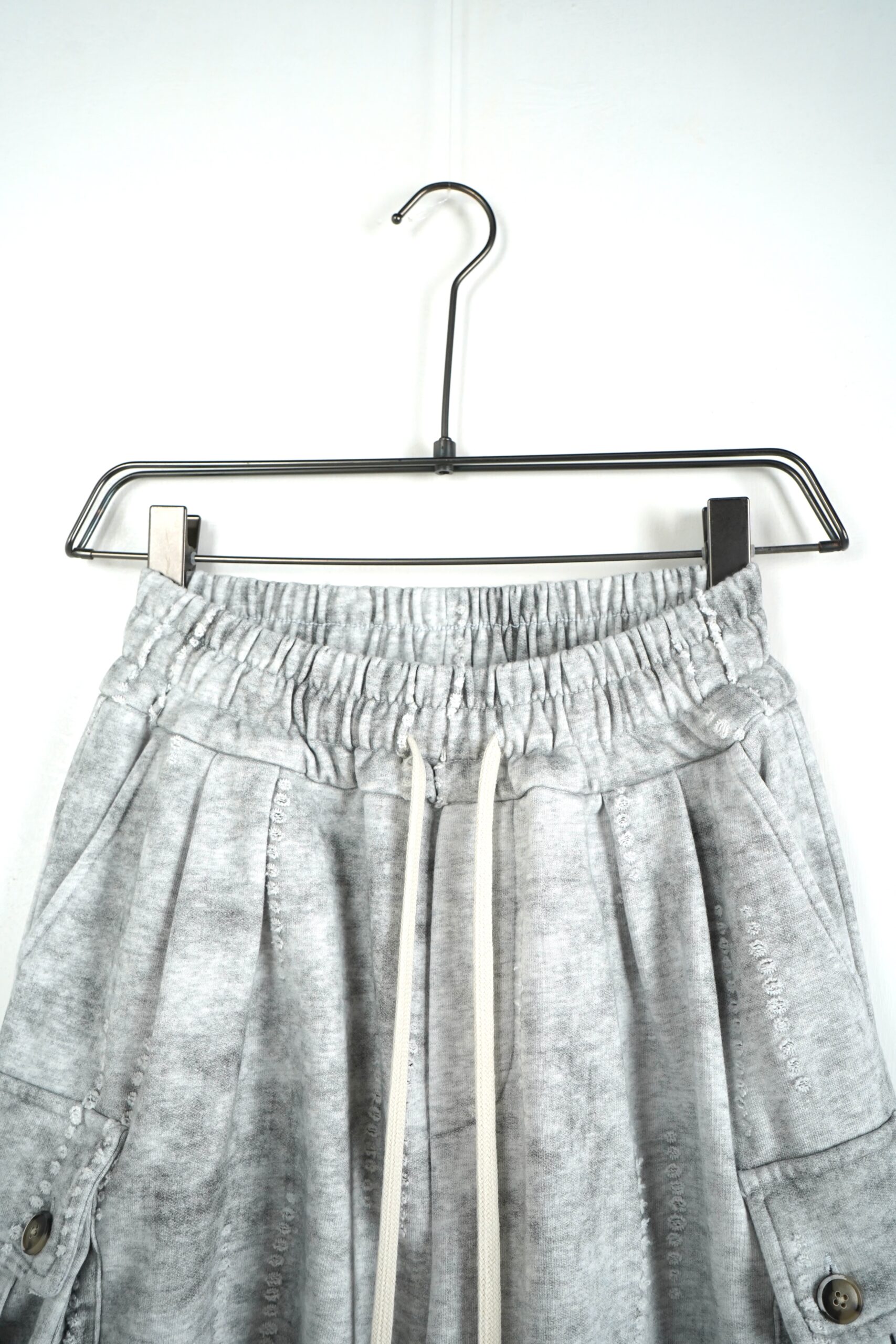 Lavaggio stonewash con rotture su tutto il capo creano un effetto invecchiato, tasconi laterali con bottoni, vestibilità oversize